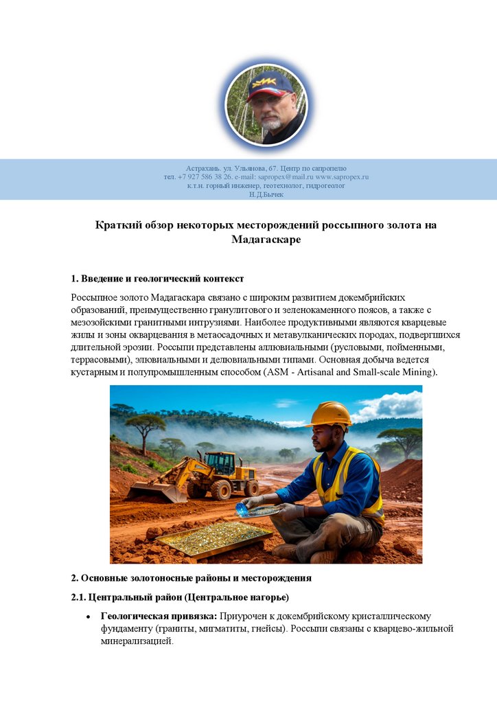 Краткий обзор некоторых месторождений россыпного золота на Мадагаскаре
