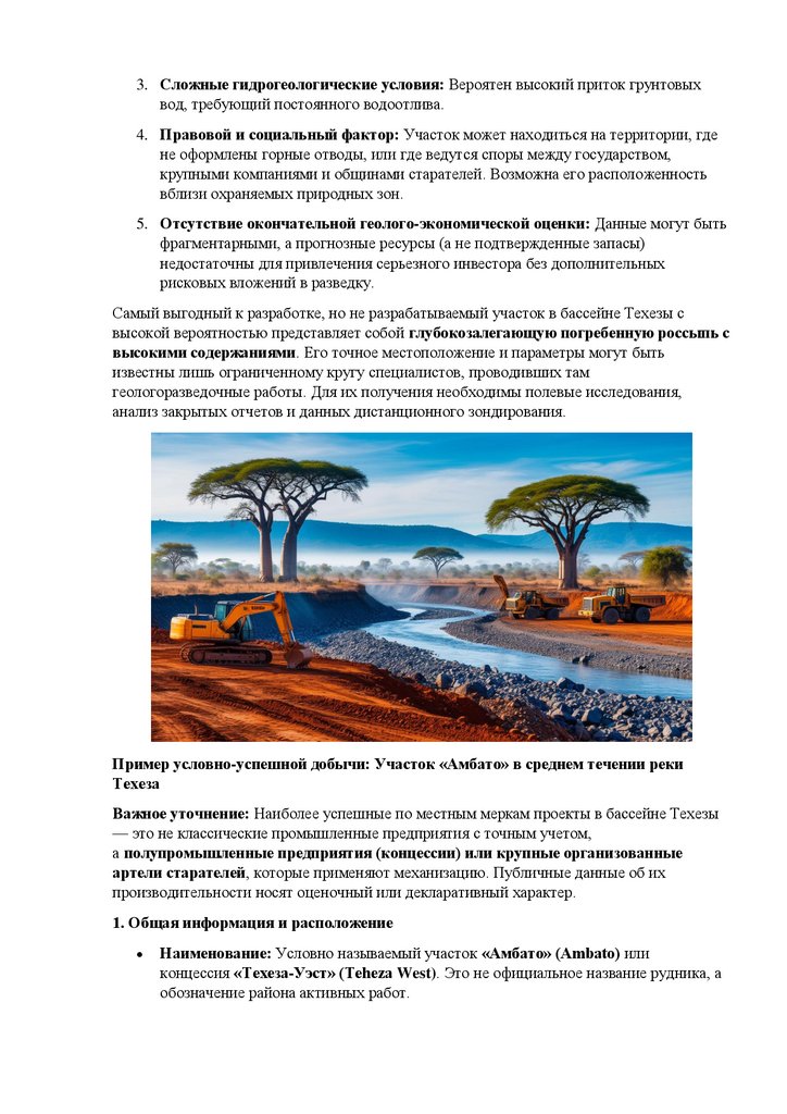 золотоносных участка примыкающих к руслу реки Техеза. На участках, как наиболее