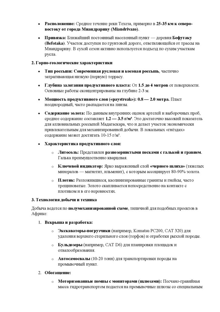 для аллювиальных россыпей Мадагаскара, что и делает участок экономически