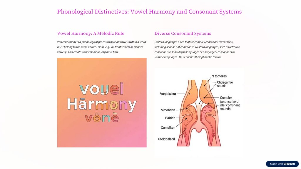 Phonological Distinctives: Vowel Harmony and Consonant SystemsVowel Harmony: A Melodic Rule