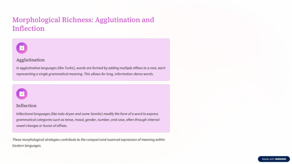 These morphological strategies contribute to the compact and nuanced expression of meaning within