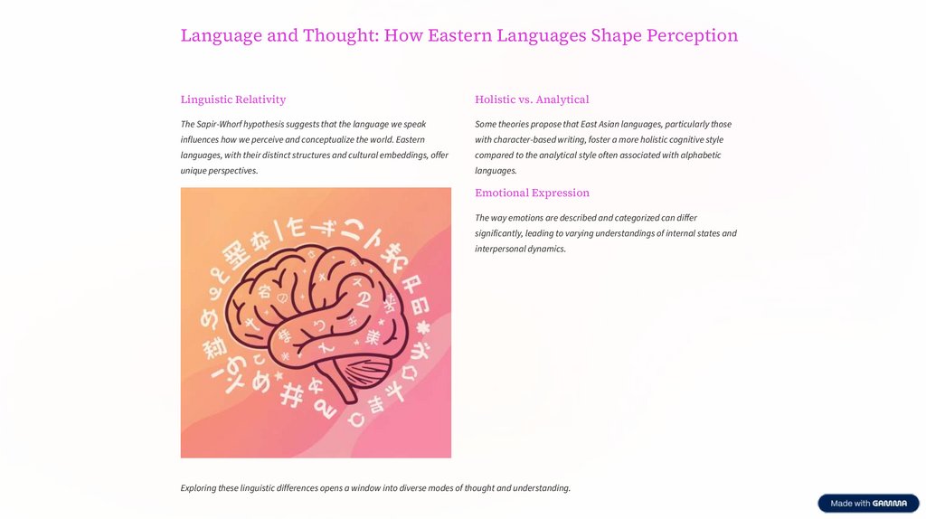 Language and Thought: How Eastern Languages Shape PerceptionLinguistic Relativity