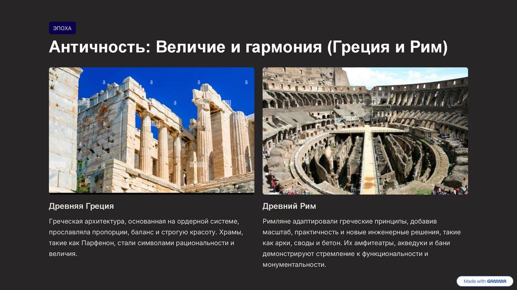 ЭПОХААнтичность: Величие и гармония (Греция и Рим)