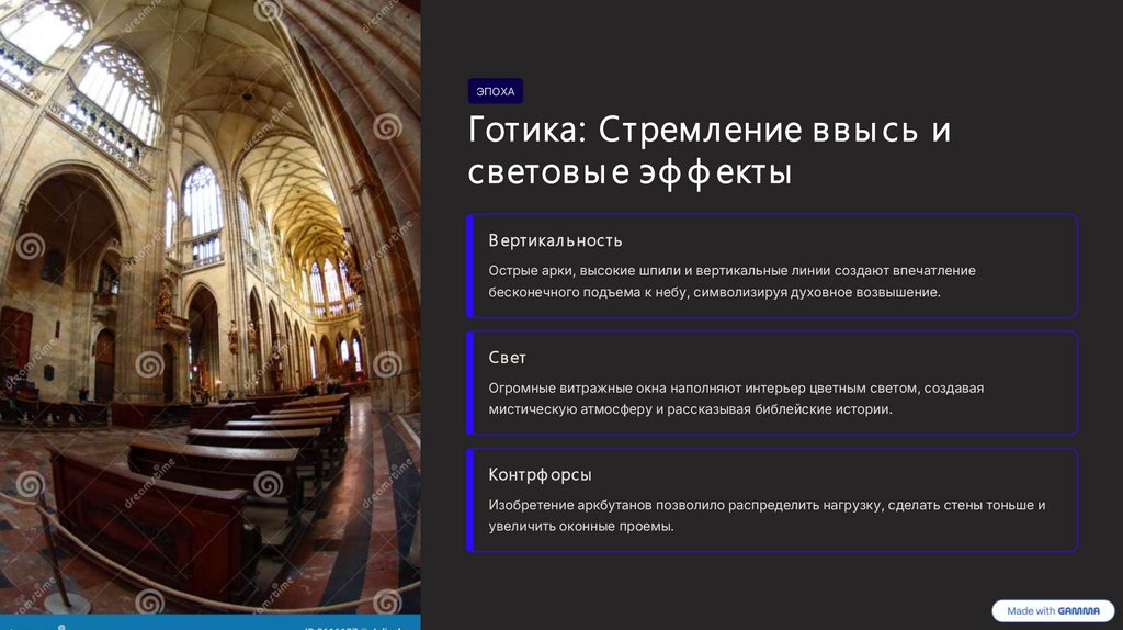 Острые арки, высокие шпили и вертикальные линии создают впечатление