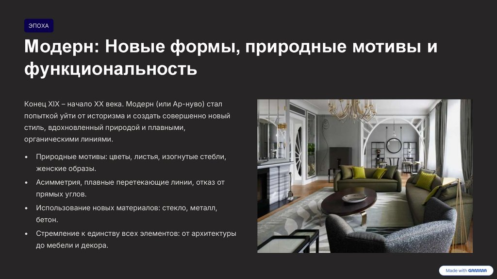 ЭПОХАМодерн: Новые формы, природные мотивы и