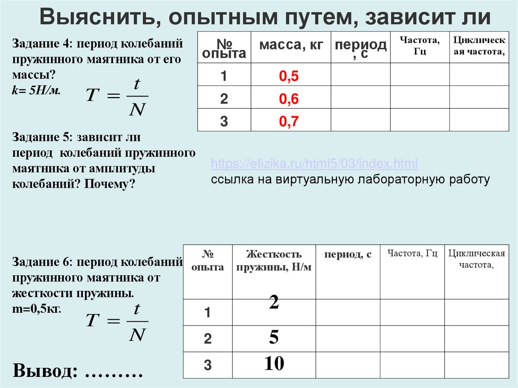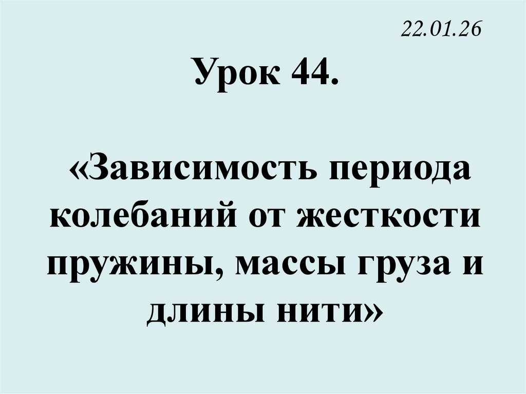 Урок 44. Урок-исследование Зависимость периода колебаний от жесткости пружины и массы