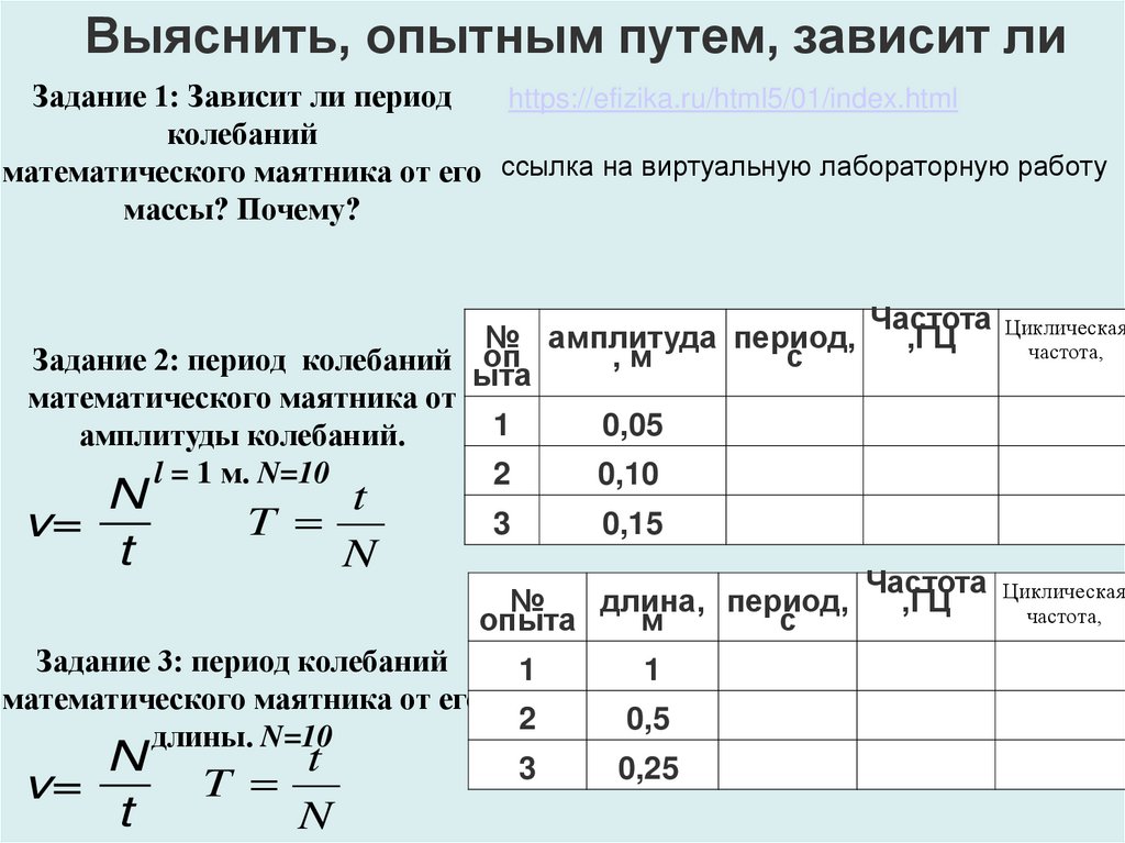 математического маятника от его ссылка на виртуальную лабораторную работу