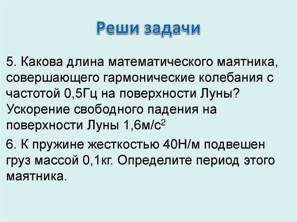 5. Какова длина математического маятника,совершающего гармонические колебания с