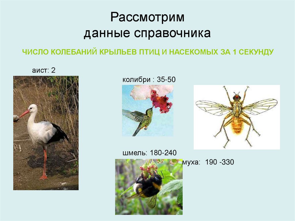 ЧИСЛО КОЛЕБАНИЙ КРЫЛЬЕВ ПТИЦ И НАСЕКОМЫХ ЗА 1 СЕКУНДУ