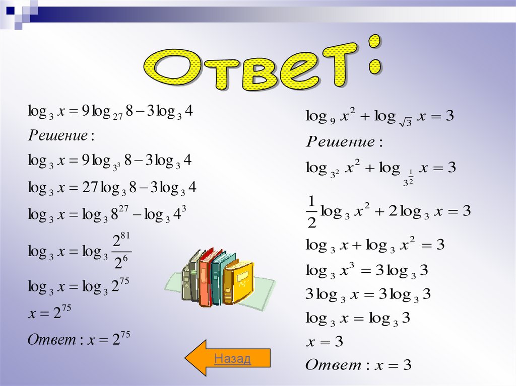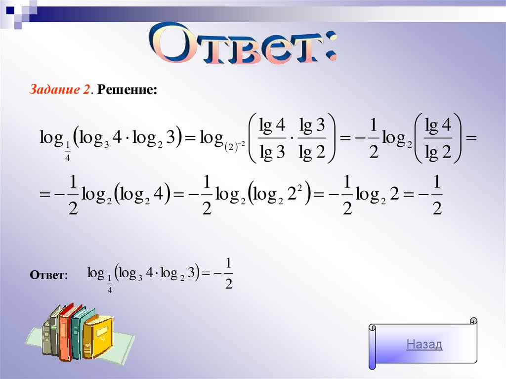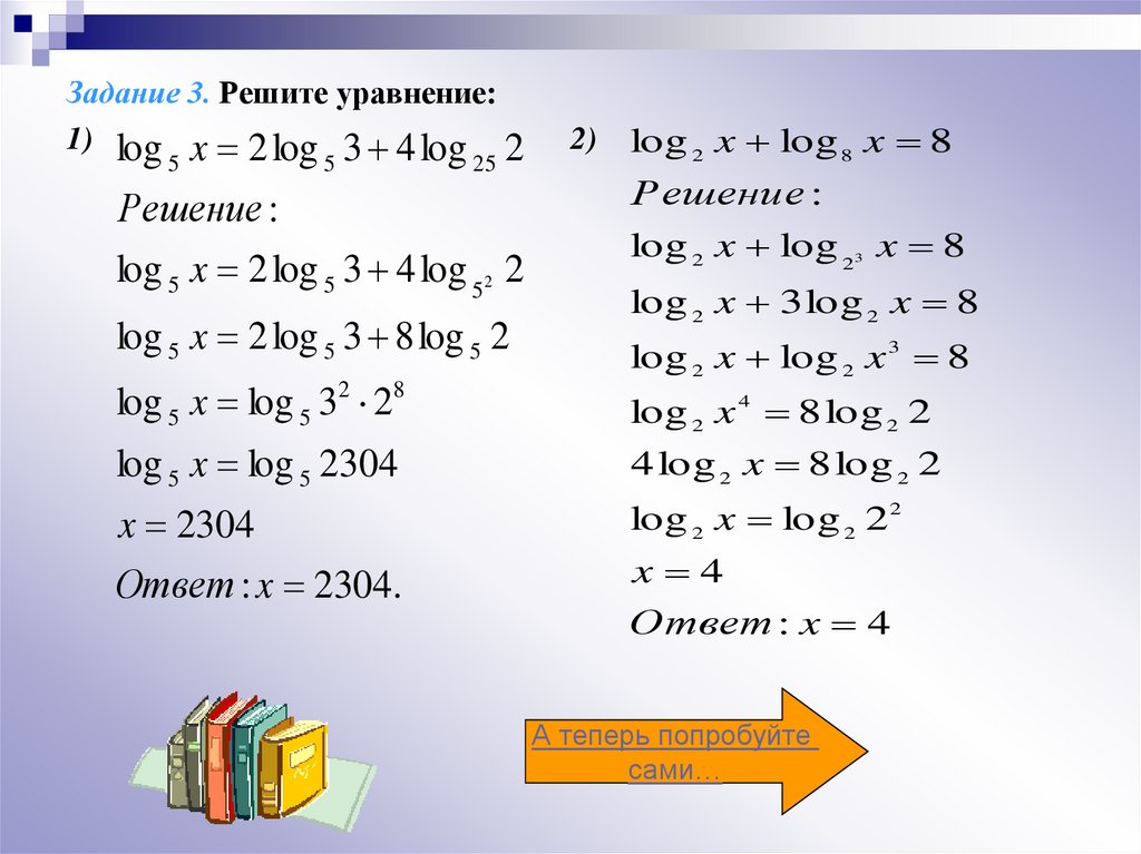 Задание 3. Решите уравнение:1) log x 2 log 3 4 log 2