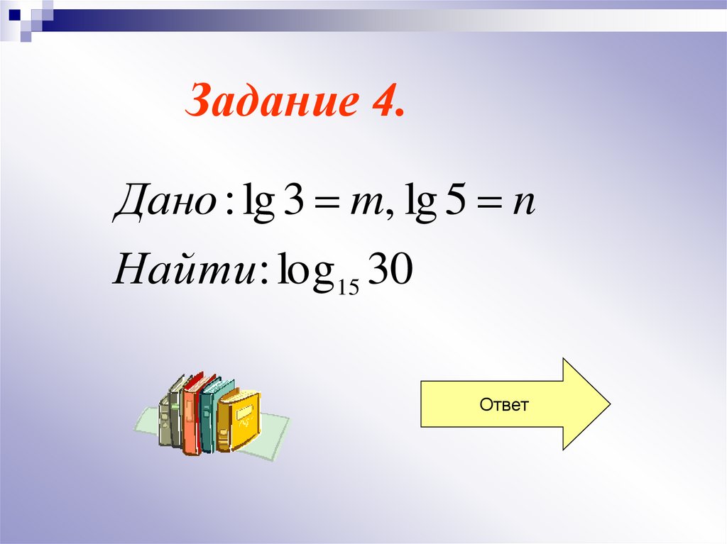 Задание 4. Дано: log 7 2 mНайти: log 49 28