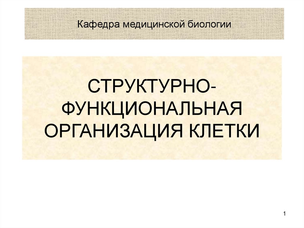 Кафедра медицинской биологииСТРУКТУРНОФУНКЦИОНАЛЬНАЯ