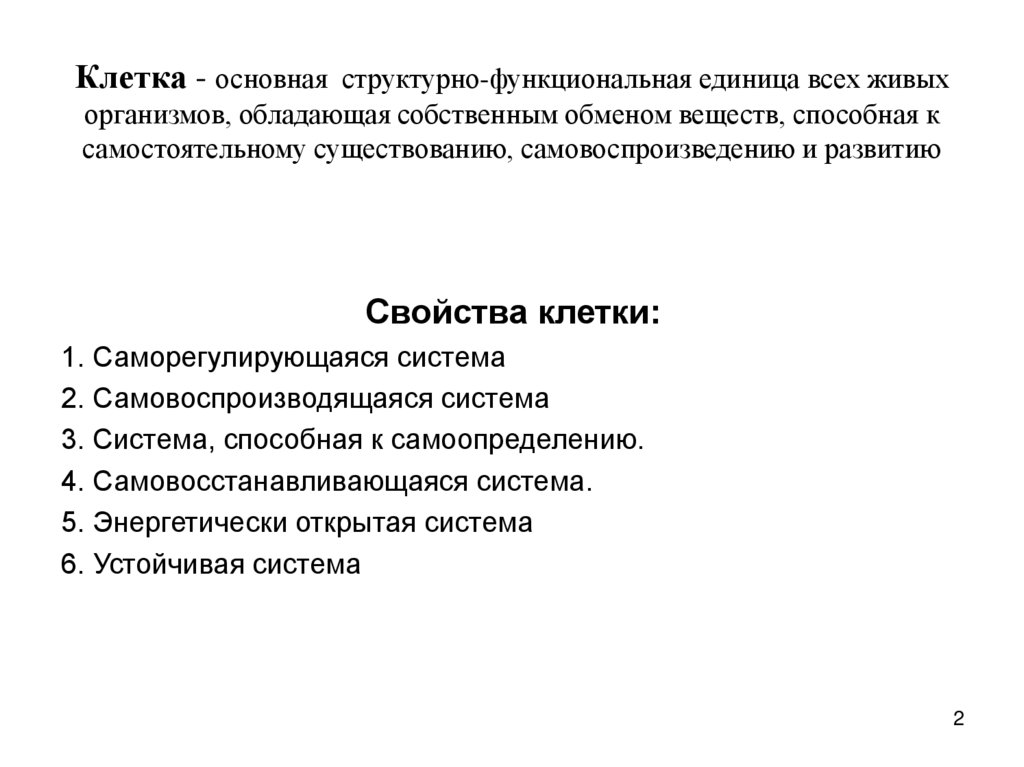 Клетка - основная структурно-функциональная единица всех живыхорганизмов, обладающая собственным обменом веществ, способная к