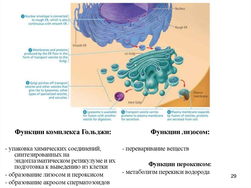 Функции комплекса Гольджи:- упаковка химических соединений,