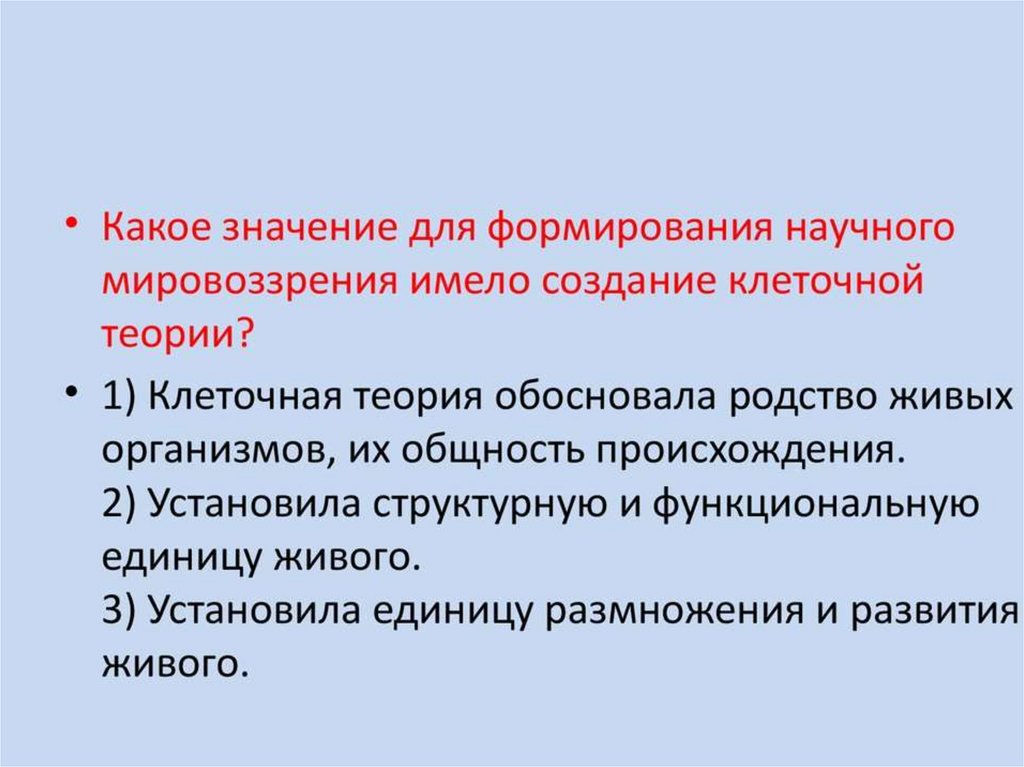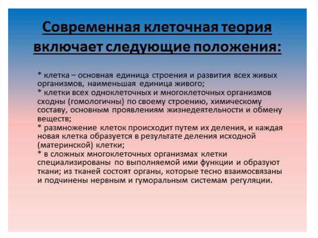 Положения клеточной теории1. Клетка – элементарная структурно-функциональная единица