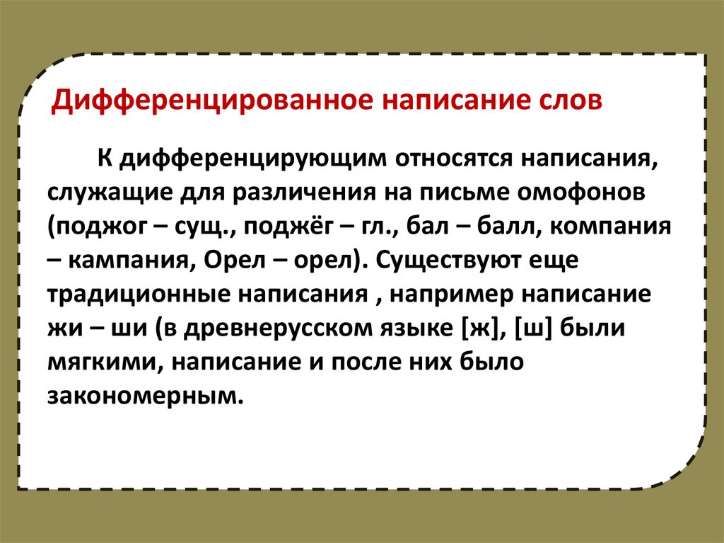 Дифференцированное написание словК дифференцирующим относятся написания,