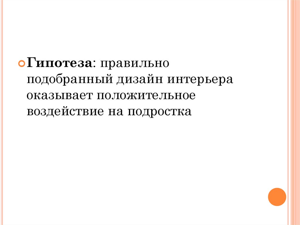 Гипотеза: правильно подобранныйдизайн интерьера оказывает