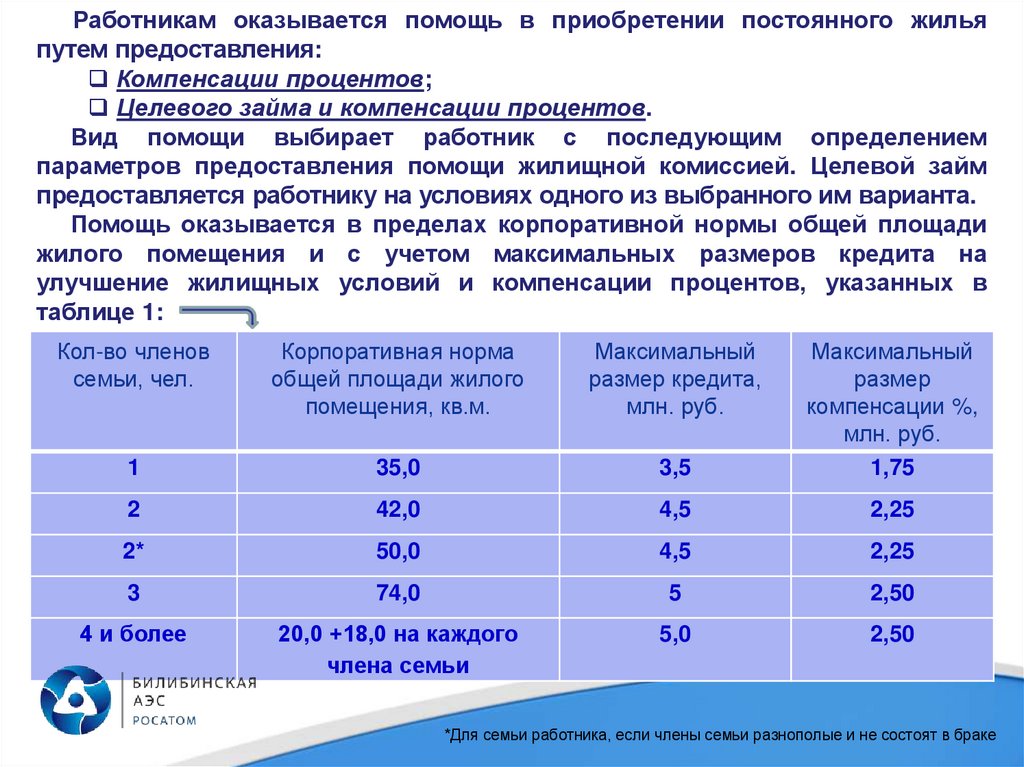 Помощь оказывается в пределах корпоративной нормы общей площади