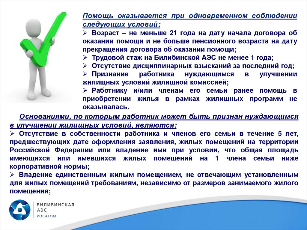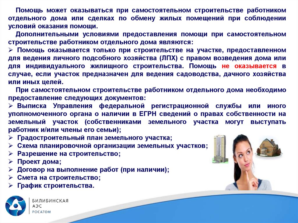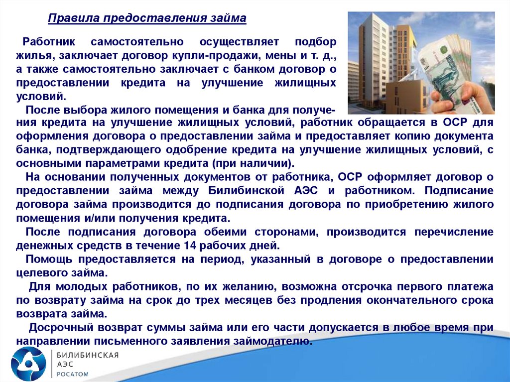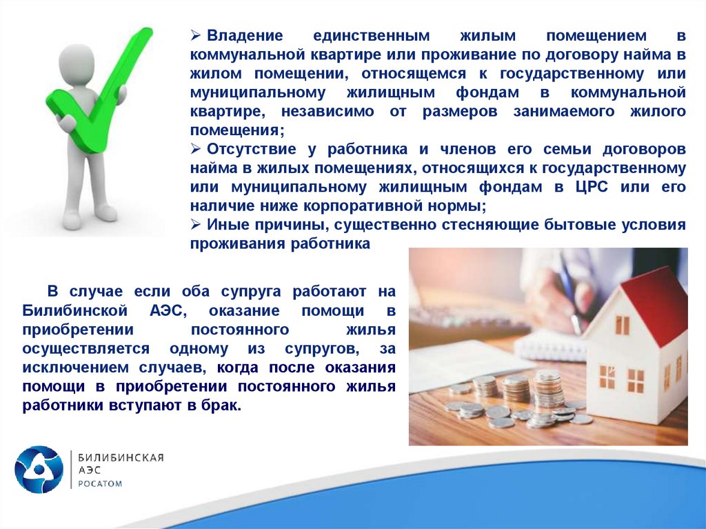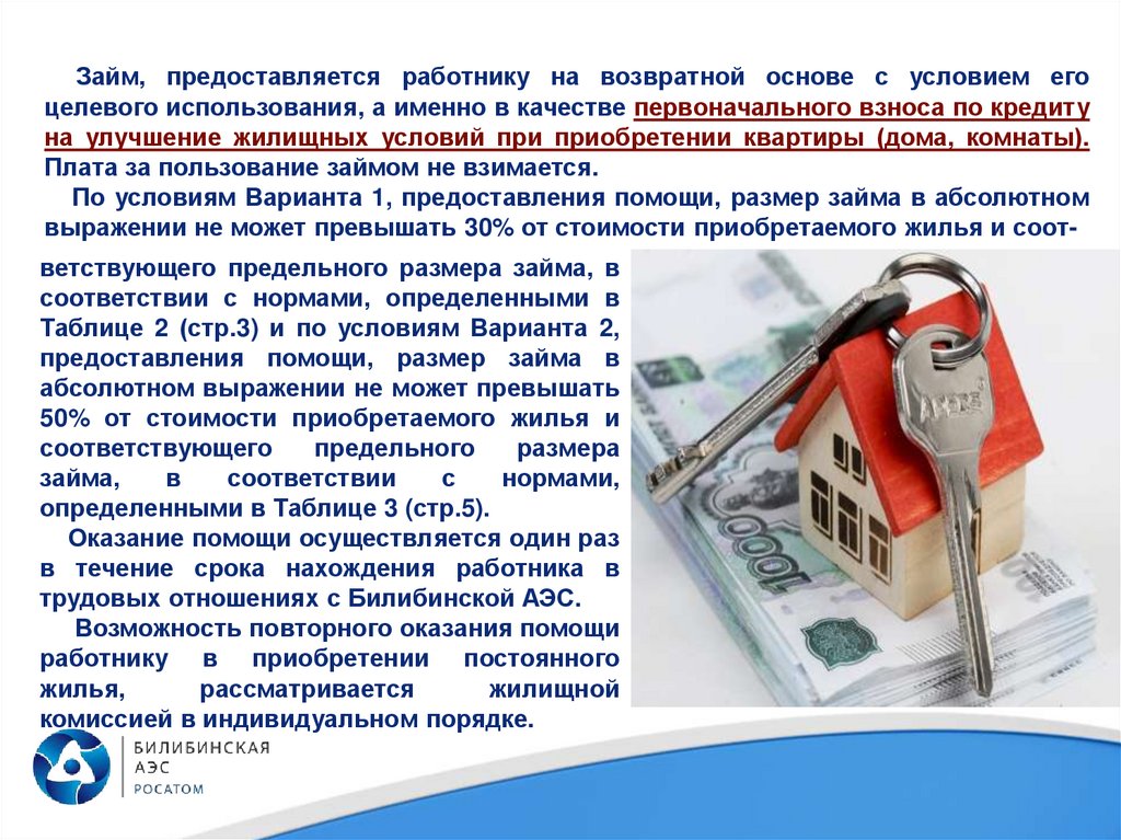 Работникам оказывается помощь в приобретении постоянного жильяпутем предоставления: