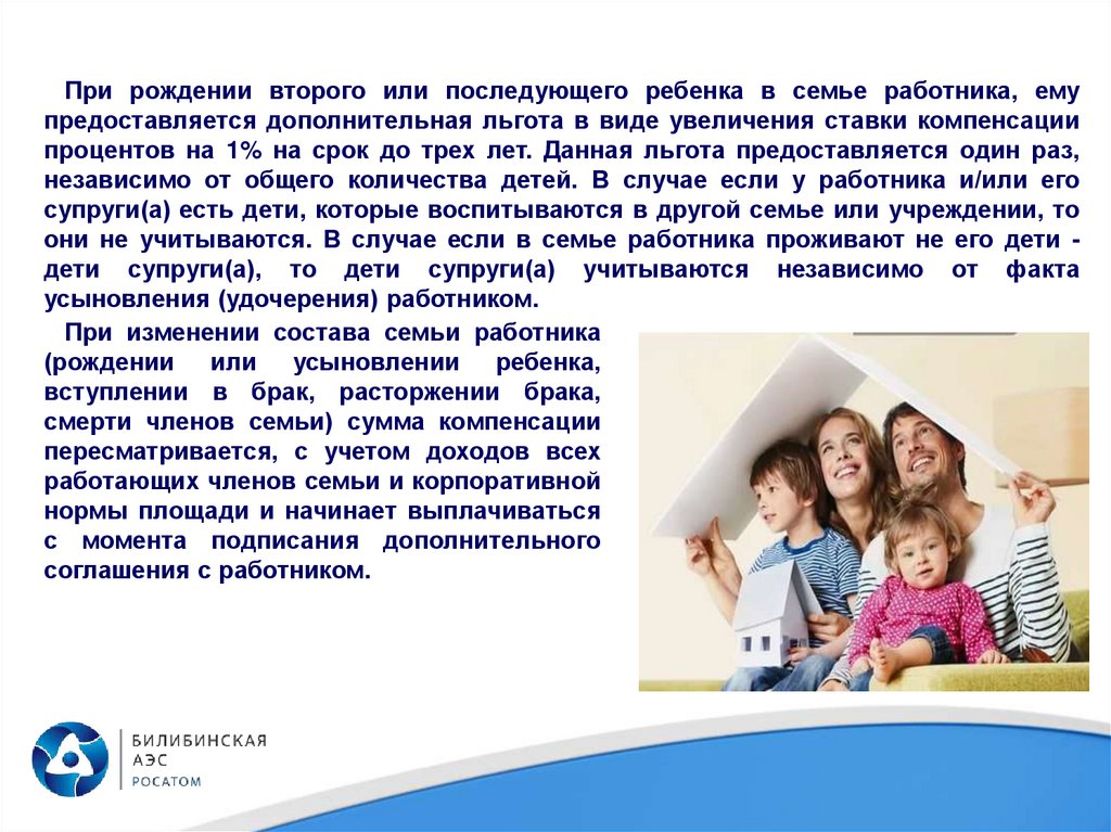 В случае если у работника и/или его супруги(а) есть дети, которые проживают вдругой семье или учреждении, то при расчете площади жилого помещения они не