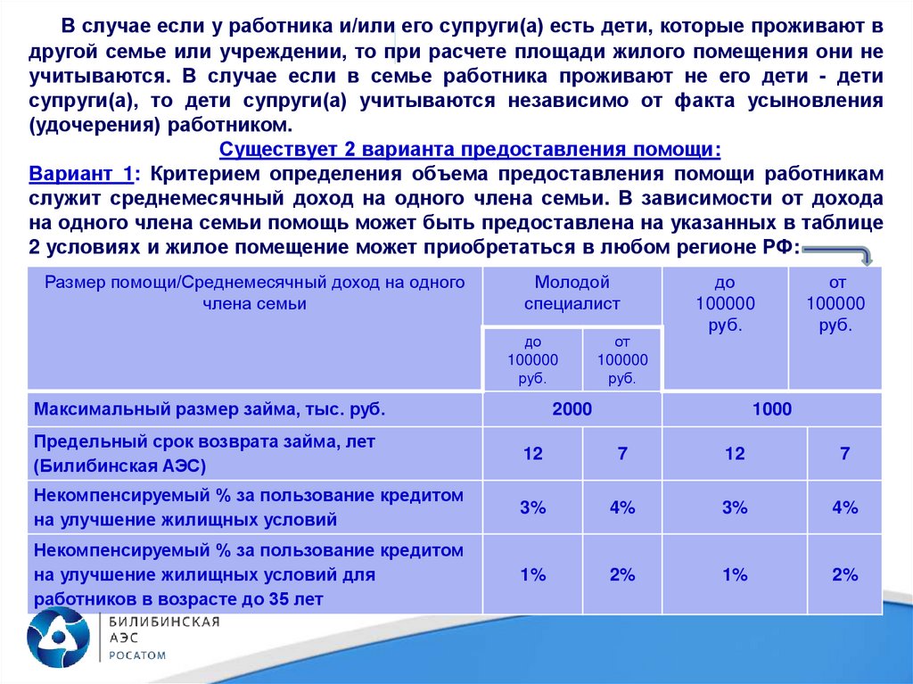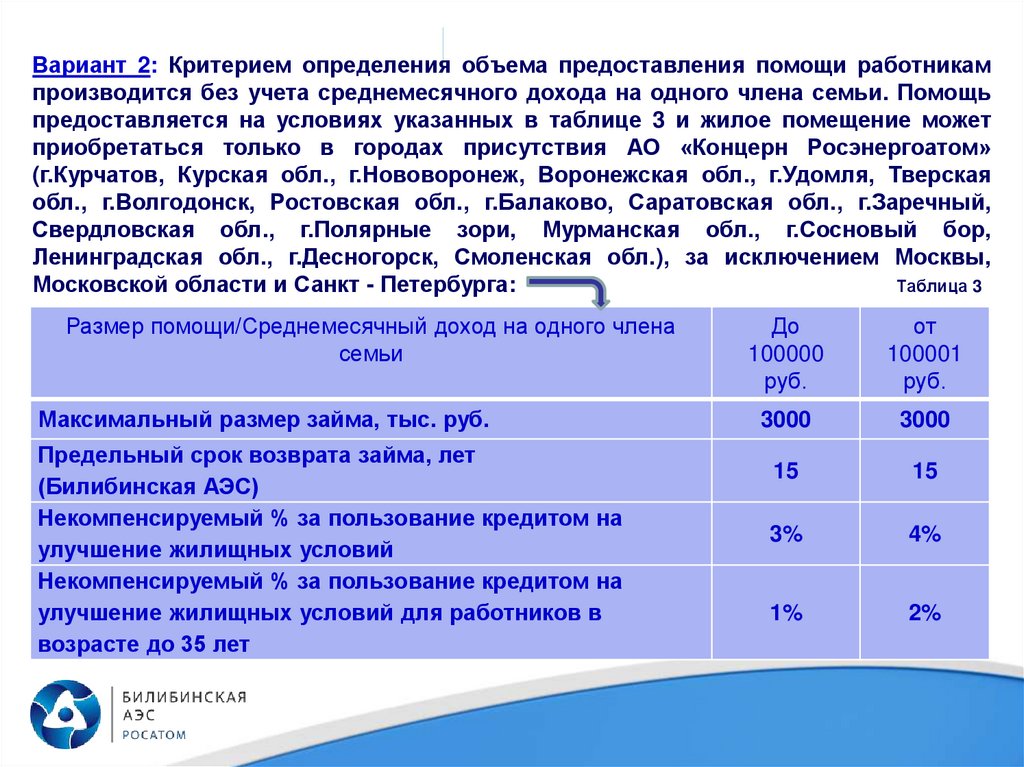 Вариант 2: Критерием определения объема предоставления помощи работникампроизводится без учета среднемесячного дохода на одного члена семьи. Помощь