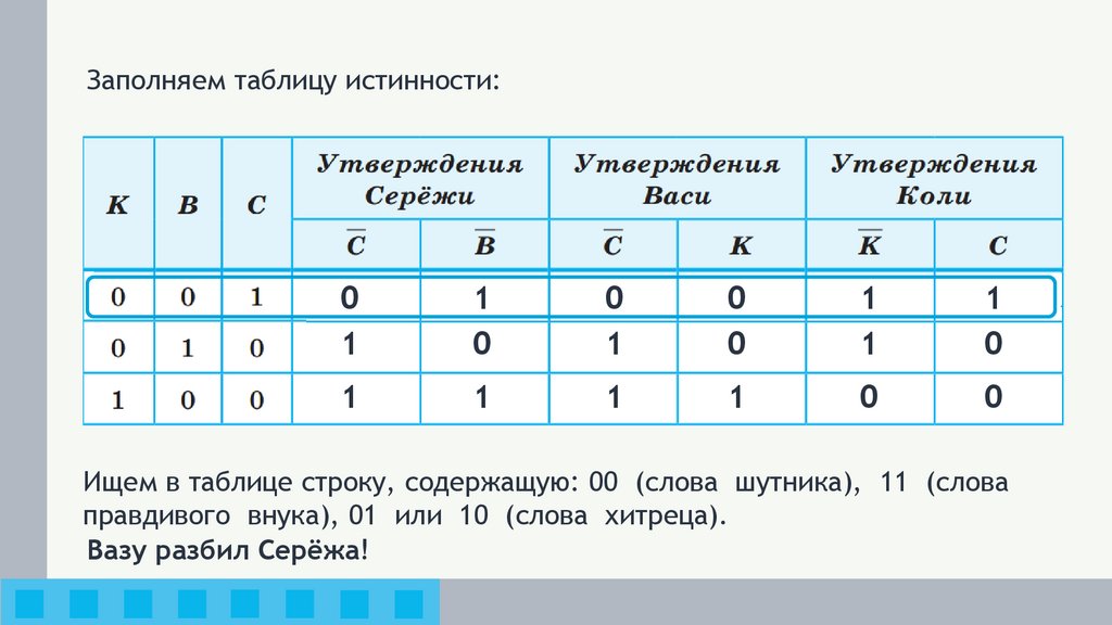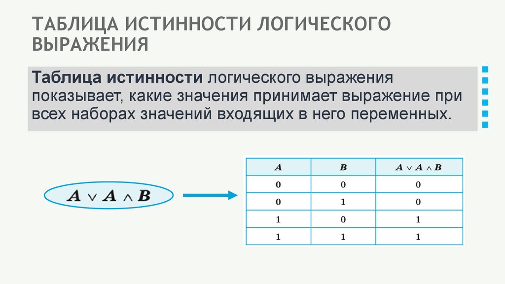 ТАБЛИЦА ИСТИННОСТИ ЛОГИЧЕСКОГОВЫРАЖЕНИЯ