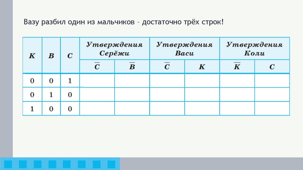 Вазу разбил один из мальчиков – достаточно трёх строк!10.