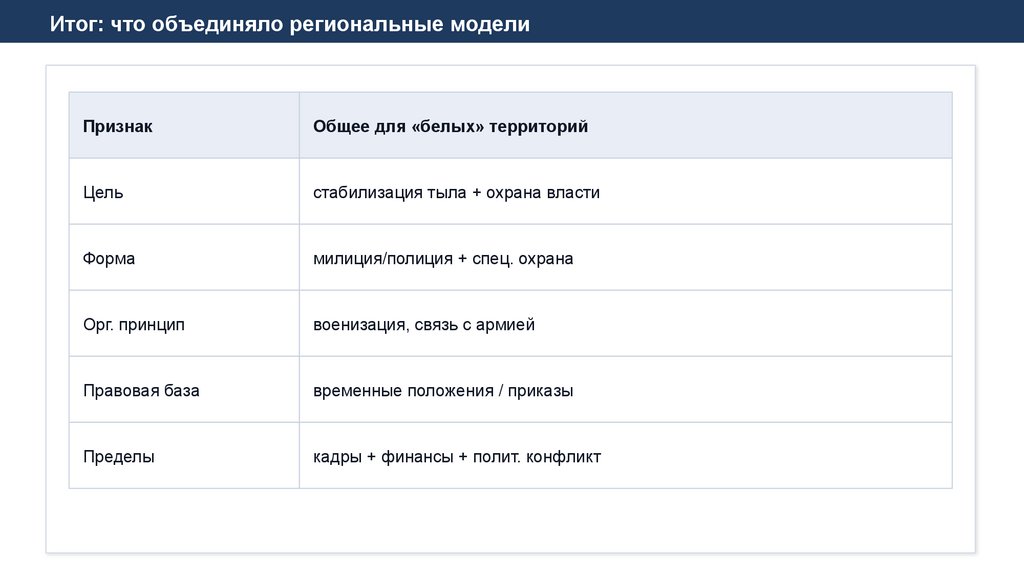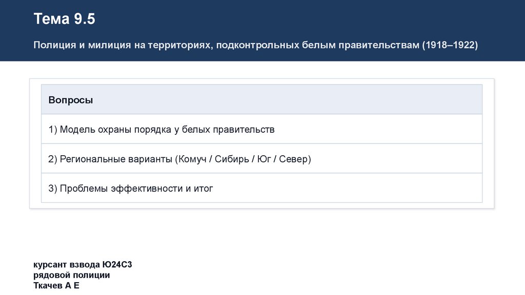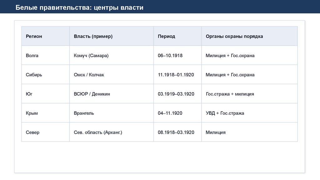 Тема 9.5Полиция и милиция на территориях, подконтрольных белым правительствам (1918–1922)