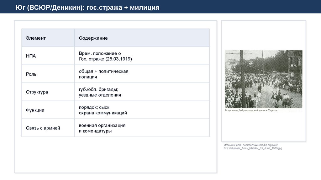 Юг (ВСЮР/Деникин): гос.стража + милицияЭлемент