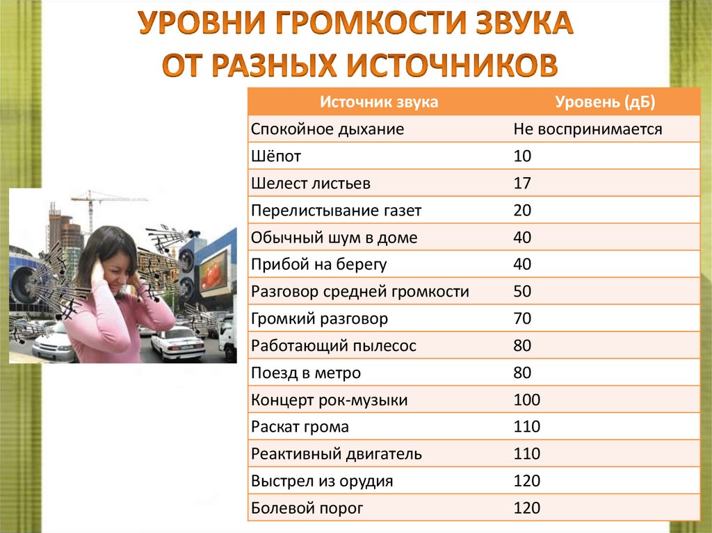 Источник звукаУровень (дБ)