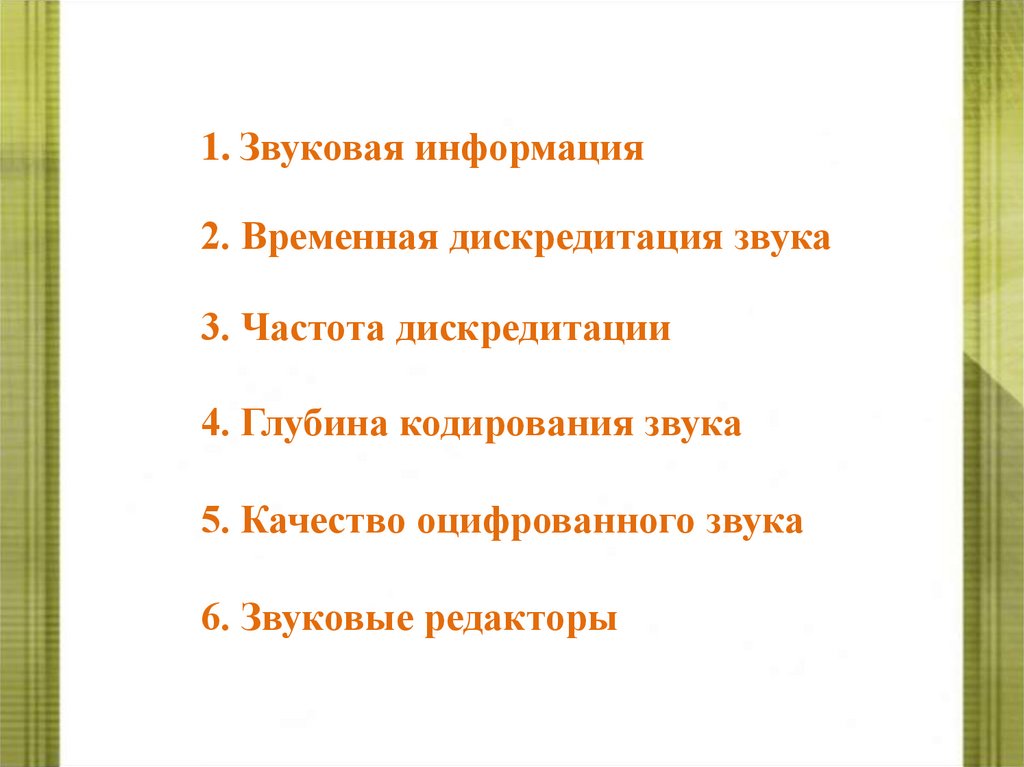 1. Звуковая информация2. Временная дискредитация звука