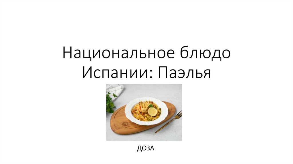 ДОЗА2. Паэлья — традиционное испанское блюдо, приготовленное из риса, овощей, морепродуктов или мяса. Оно является символом