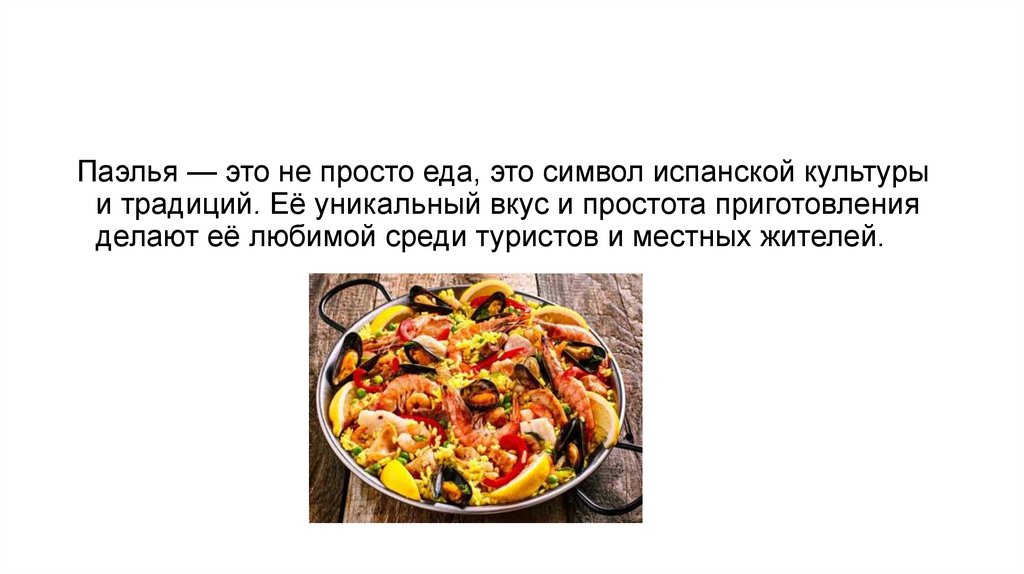 Паэлья — это не просто еда, это символ испанской культурыи традиций. Её уникальный вкус и простота приготовления