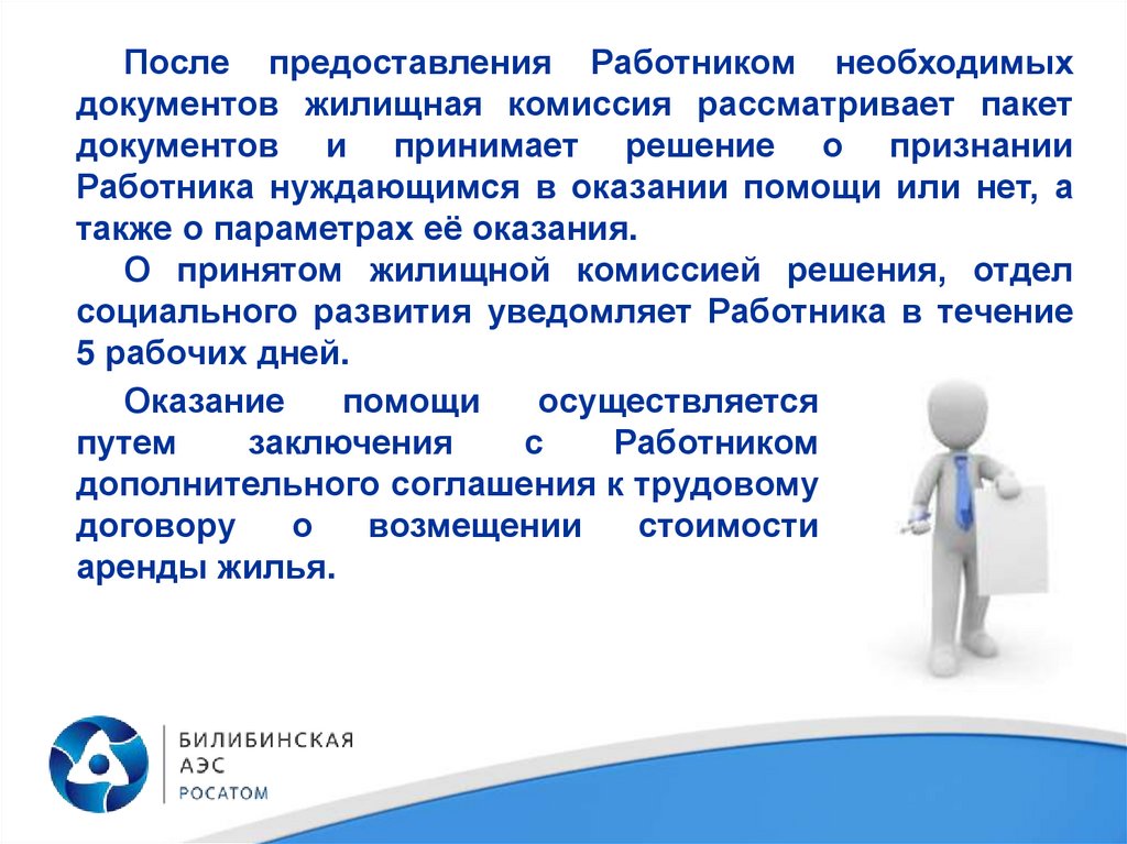 После предоставления Работником необходимыхдокументов жилищная комиссия рассматривает пакет