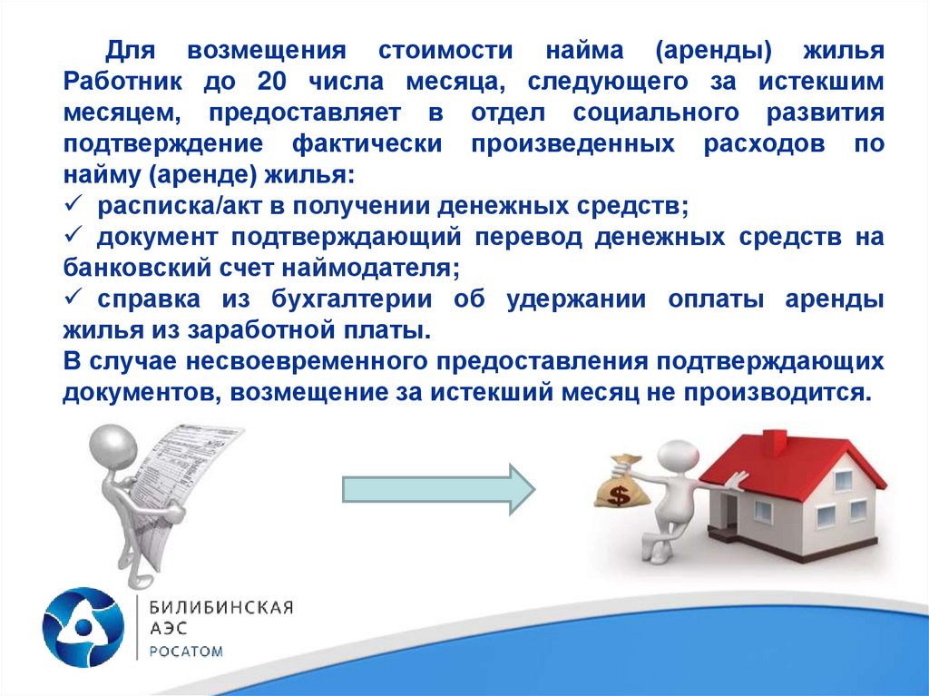 Для возмещения стоимости найма (аренды) жильяРаботник до 20 числа месяца, следующего за истекшим