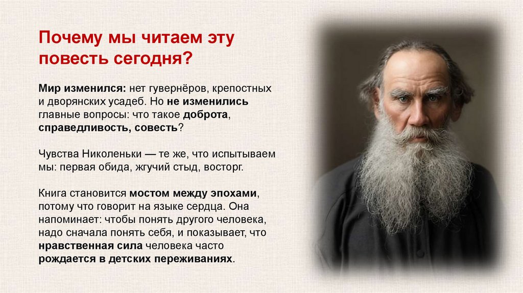 Книга Толстого говорит с нами на языке чувств, которые