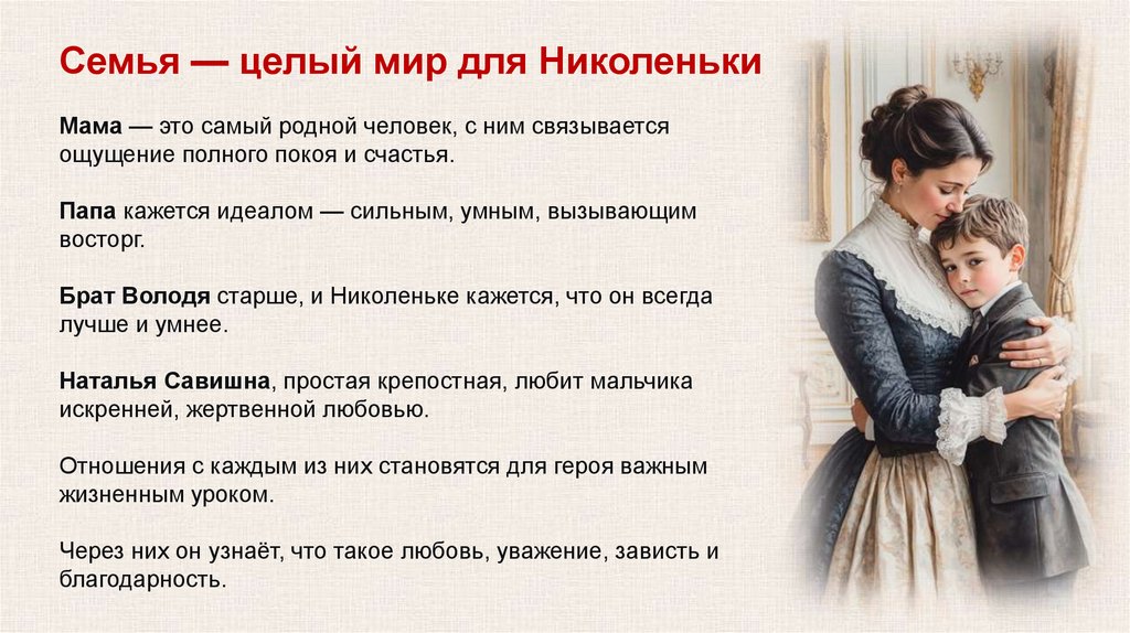 Наталья Савишна, простая крепостная, любит мальчика