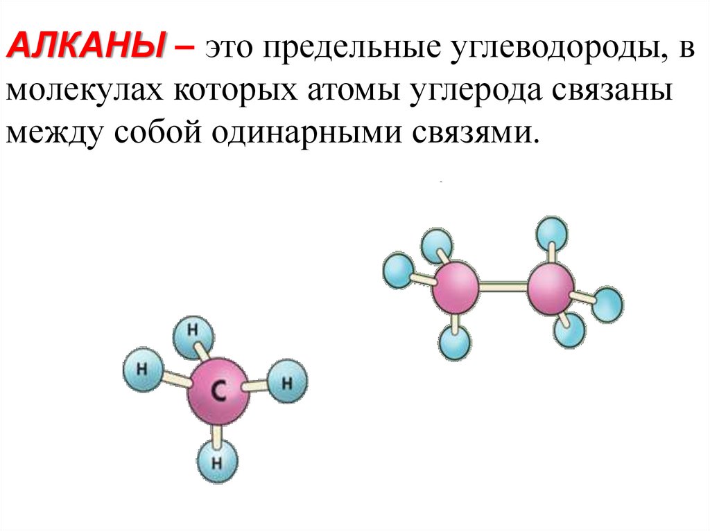 АЛКАНЫ – это предельные углеводороды, вмолекулах которых атомы углерода связаны
