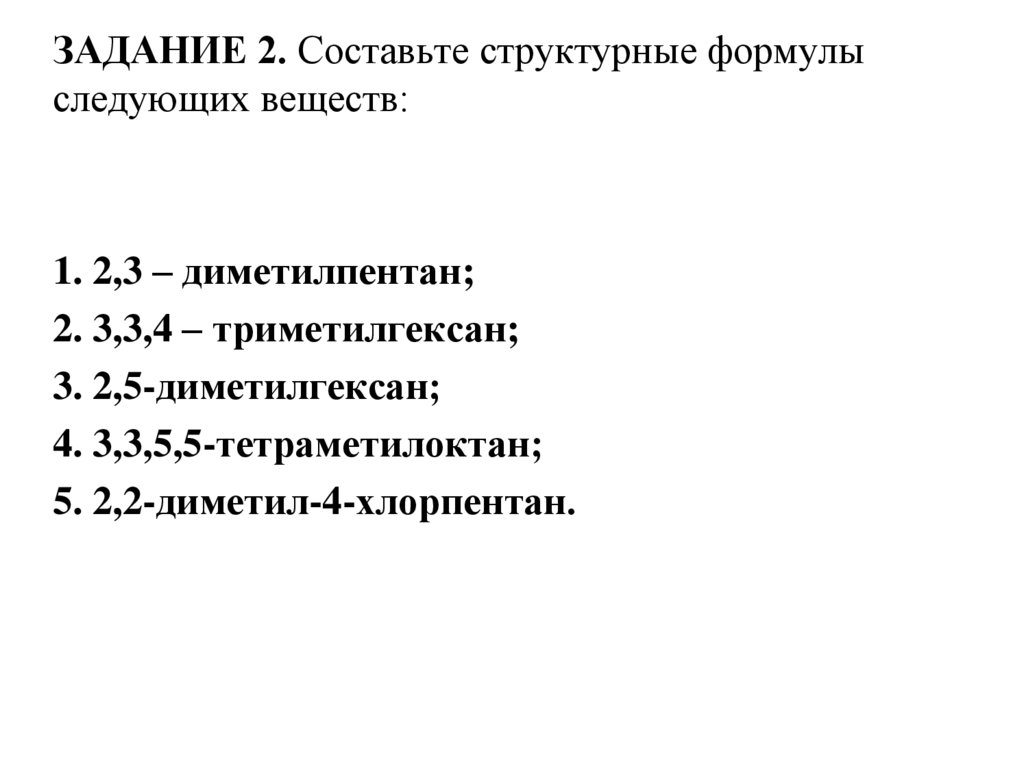 ЗАДАНИЕ 2. Составьте структурные формулыследующих веществ:
