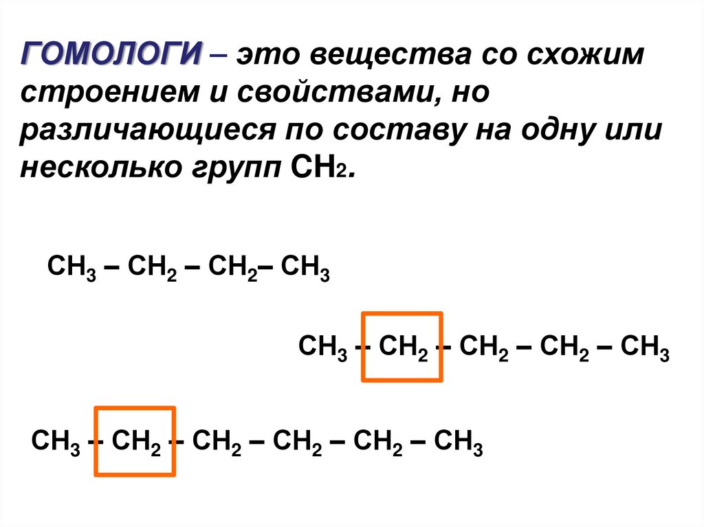 ГОМОЛОГИ – это вещества со схожимстроением и свойствами, но