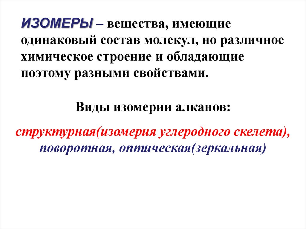 ИЗОМЕРЫ – вещества, имеющиеодинаковый состав молекул, но различное