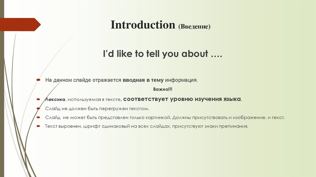 Introduction (Введение)I’d like to tell you about ….