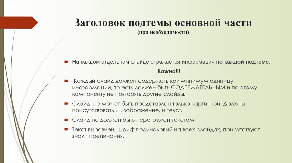 Заголовок подтемы основной части(при необходимости)