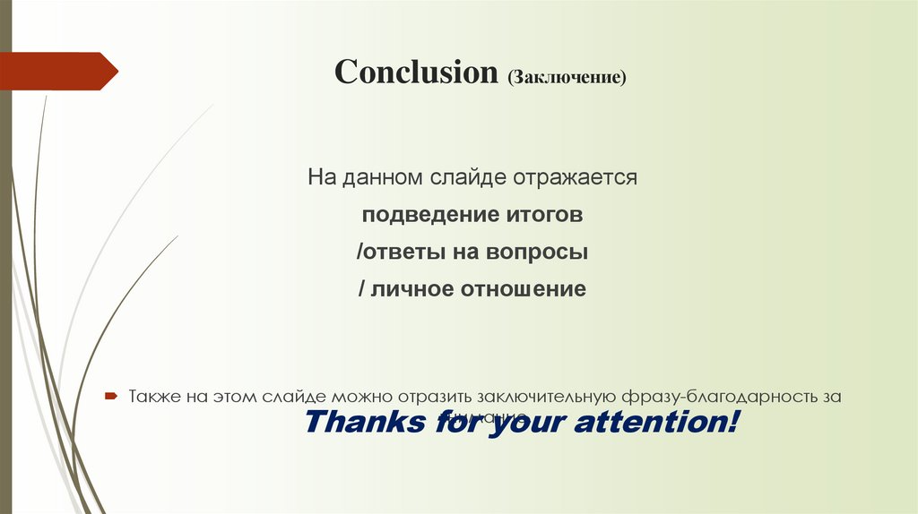Conclusion (Заключение)На данном слайде отражается