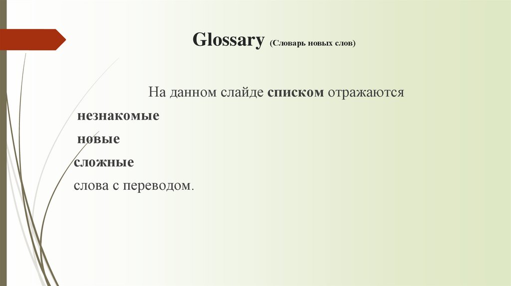 Glossary (Словарь новых слов)На данном слайде списком отражаются