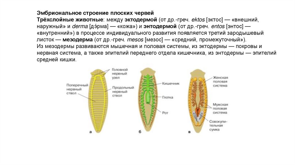 Эмбриональное строение плоских червейТрёхслойные животные: между эктодермой (от др.-греч. ektos [эктос] — «внешний,