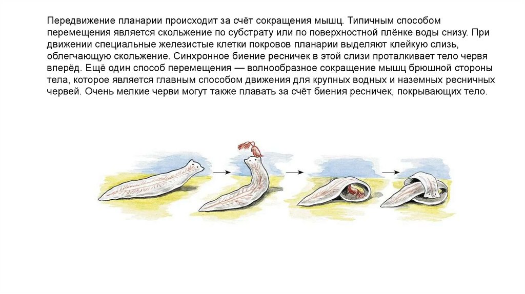 облегчающую скольжение. Синхронное биение ресничек в этой слизи проталкивает тело червя