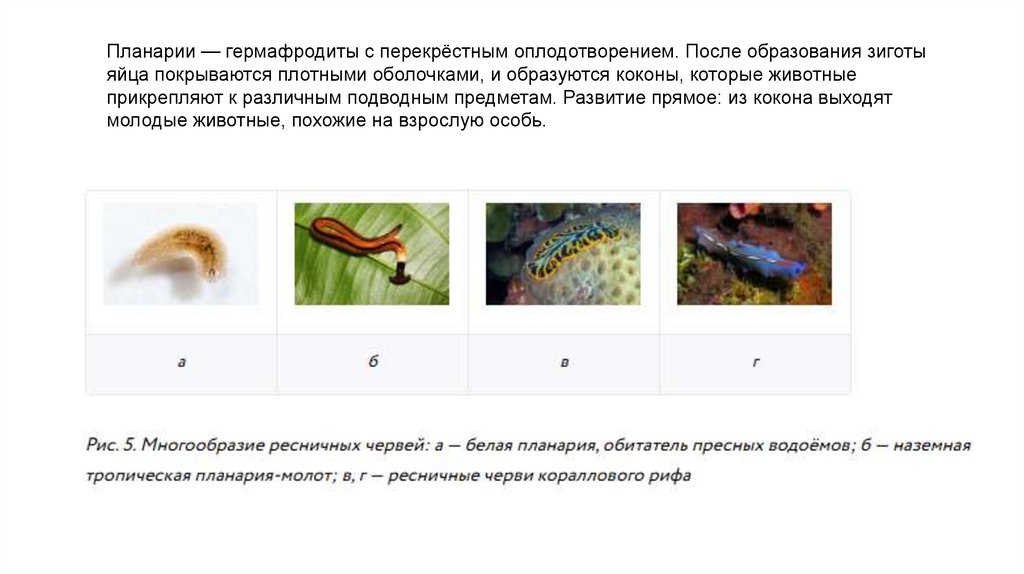 Для плоских червей характерно внутреннее оплодотворение, как правило, перекрёстное: две особи
