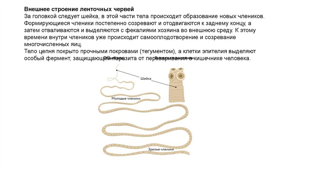 петли кишечника хозяина, червь легко противостоит движению пищевых масс.