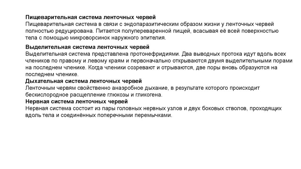 пищеварительной системы и усваивают питательные вещества всей поверхностью тела.